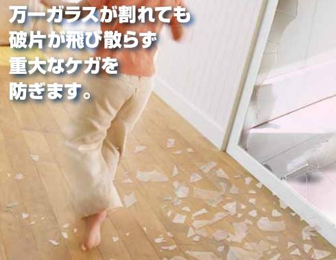 絶対に割れないガラスはありません。万一の時に備えて、危険な破片の飛散を防ぐ飛散防止フィルムをおすすめします。